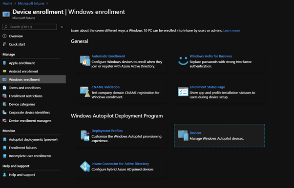 Navigate to Intune > Device Enrollment.