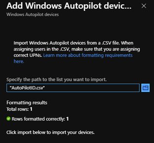 Now all the profiles and settings have been configured, we need to import the required machine into Intune as an Autopilot device.