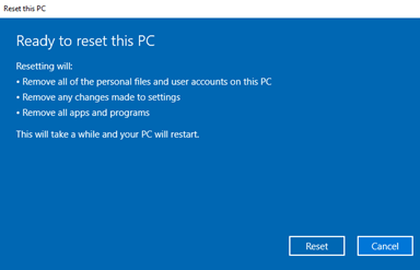 In my case I will use the Reset Windows option in Settings (although you could choose to reinstall over the top via Boot media)