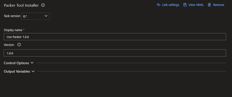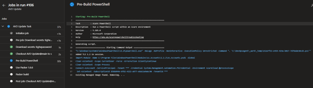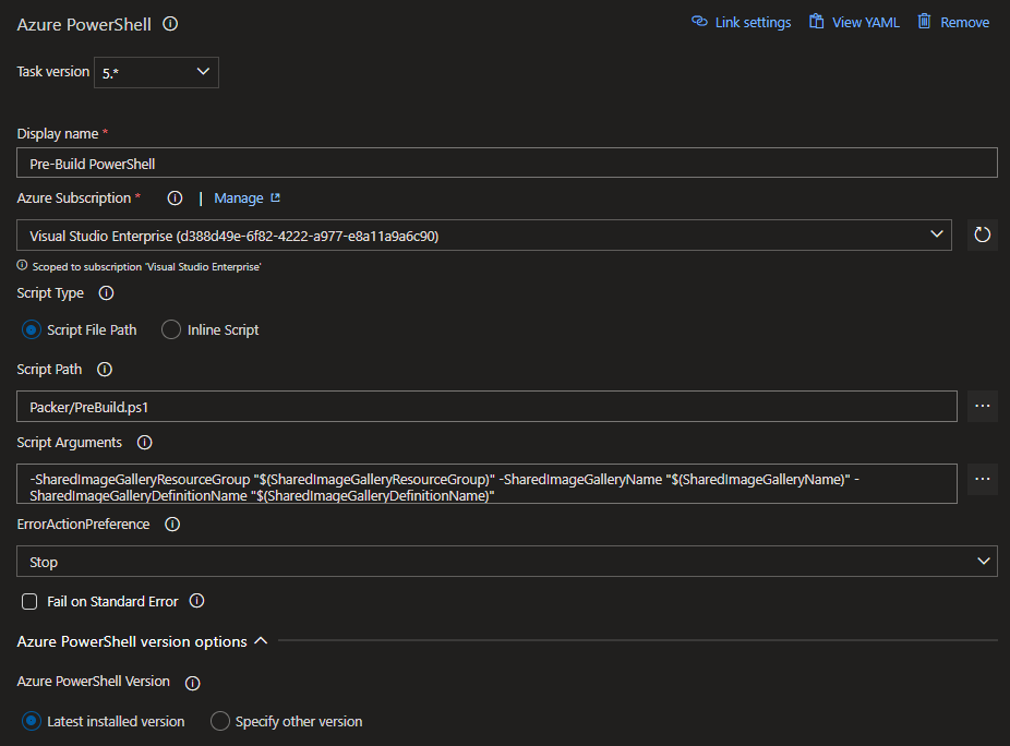 Finally, the Pre-Build script also outputs the both the latest image version and the new image version to variables, so they can be used by the main Packer task in the Pipeline.