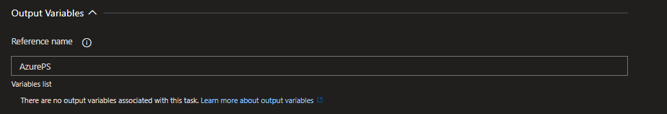 Finally, under Output Variables enter the Reference name. This will be used when referencing the output variables in other tasks.