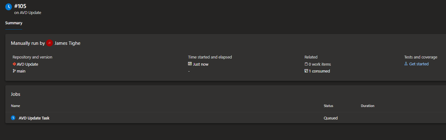 In fact, in my live environment the AVD Update Pipeline actually publishes out an Artifact which in turn triggers the main deployment.