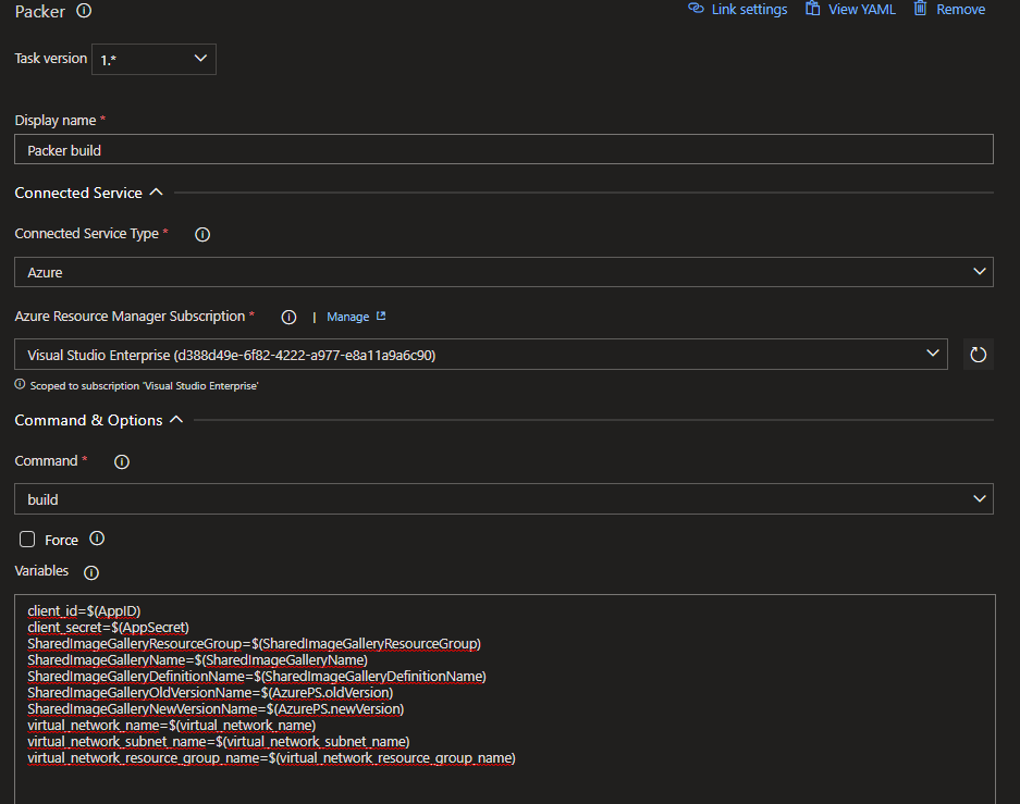 This will allow us to pass through variable groups we added to the Pipeline to the Packer build task.