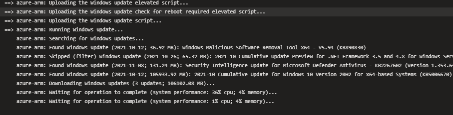 We should see that once it reaches the Packer Build task it will start installing updates!