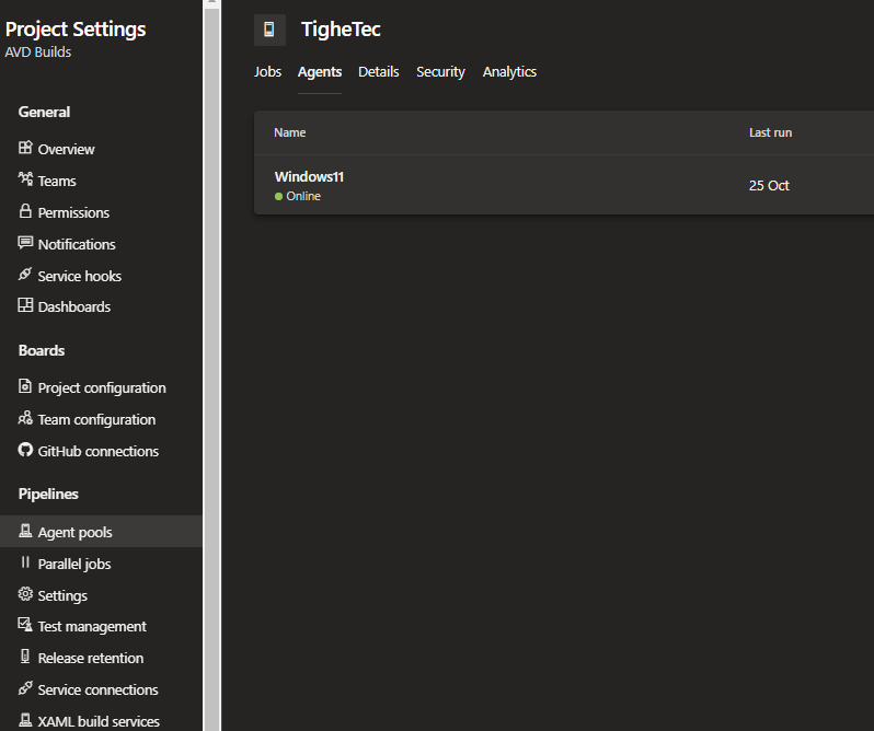 Therefore, I have installed the DevOps Agent onto my local machine and connected to my Azure DevOps environment.