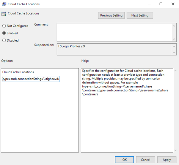 type=smb,connectionString=\\tigheavdeu.file.core.windows.net\fslogixprofiles;type=smb,connectionString=\\tigheavdeu2.file.core.windows.net\fslogixprofiles