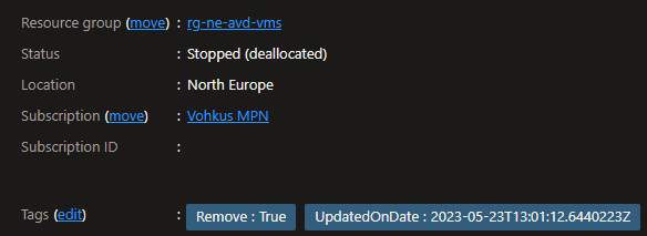 If I check the actual old Session Host VM I can also see the scripting has added the Remove Tag.