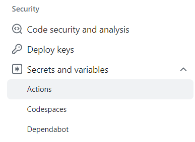 GitHub also allows Variables to be saved in the same manner as Secrets. Variables are used for data that does not need to be encrypted. We will use this to store most of our variables for deployment.