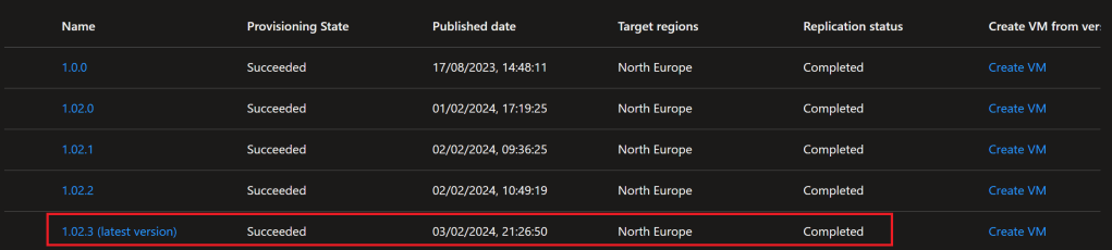 Please be aware the creation of the Shared Image Gallery version can take a considerable amount of time depending on the replication.